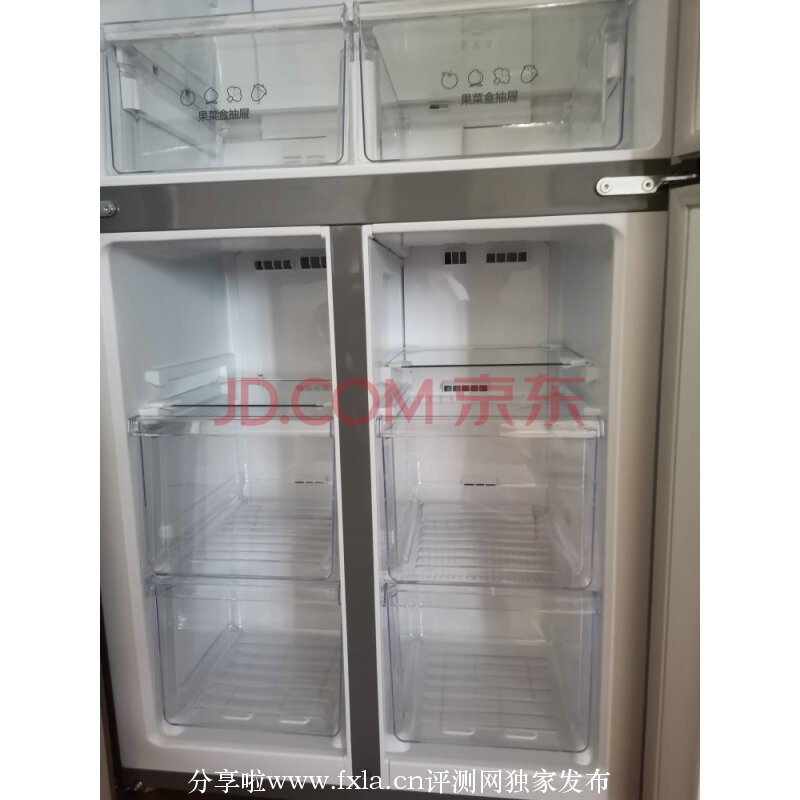 容量大小:双开门,上部保鲜五格,下部冷藏左右分开共六格,容量足够一家四口人用