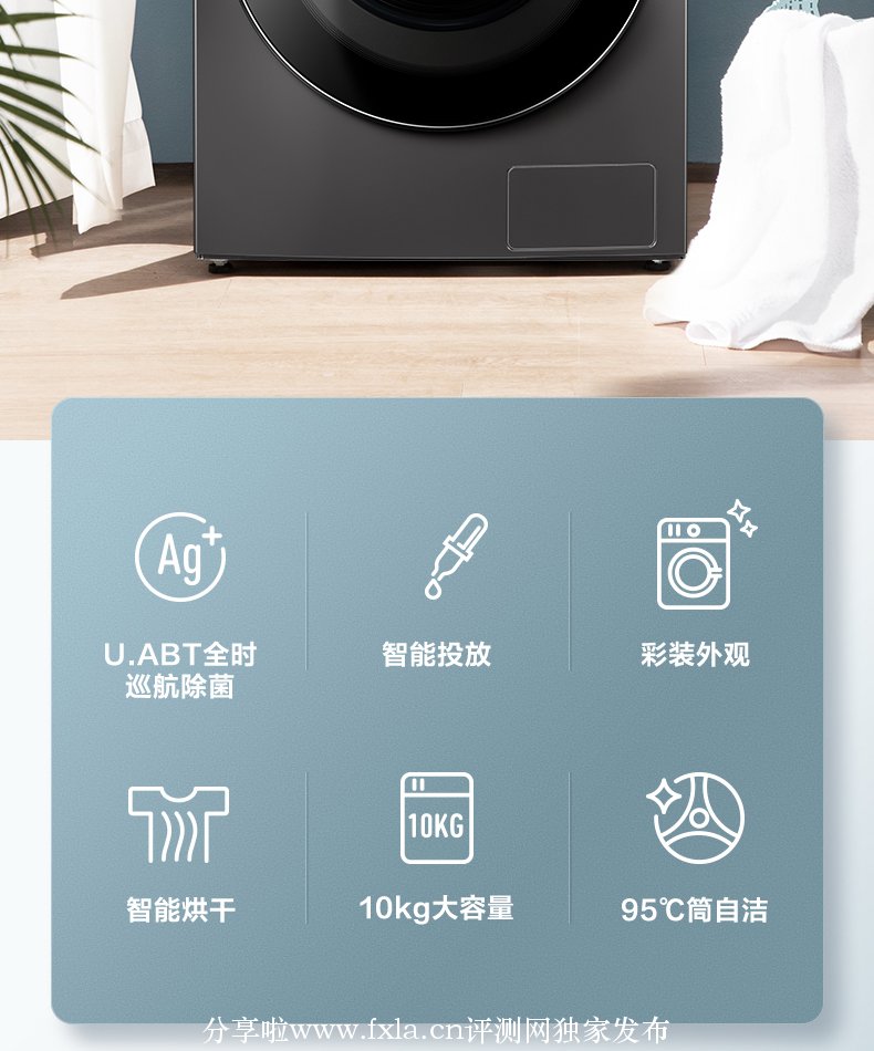 洗衣机家人都很满意!配色很不错,低调内敛!彩色屏显,更易看。智能互联,动动手指便可操作,简单易用,利于操作。送货迅速,安装及时。货到后一个小时安装师傅也来了。试洗羽绒服,感觉很棒!烘干杀菌功能都很强大!值得购买